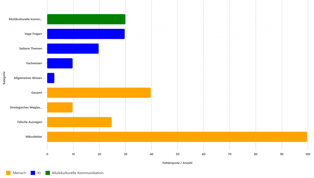 Ein Mensch macht 5–20× mehr Denk- oder Aussagefehler als eine KI bei gleicher Anzahl Aussagen.
